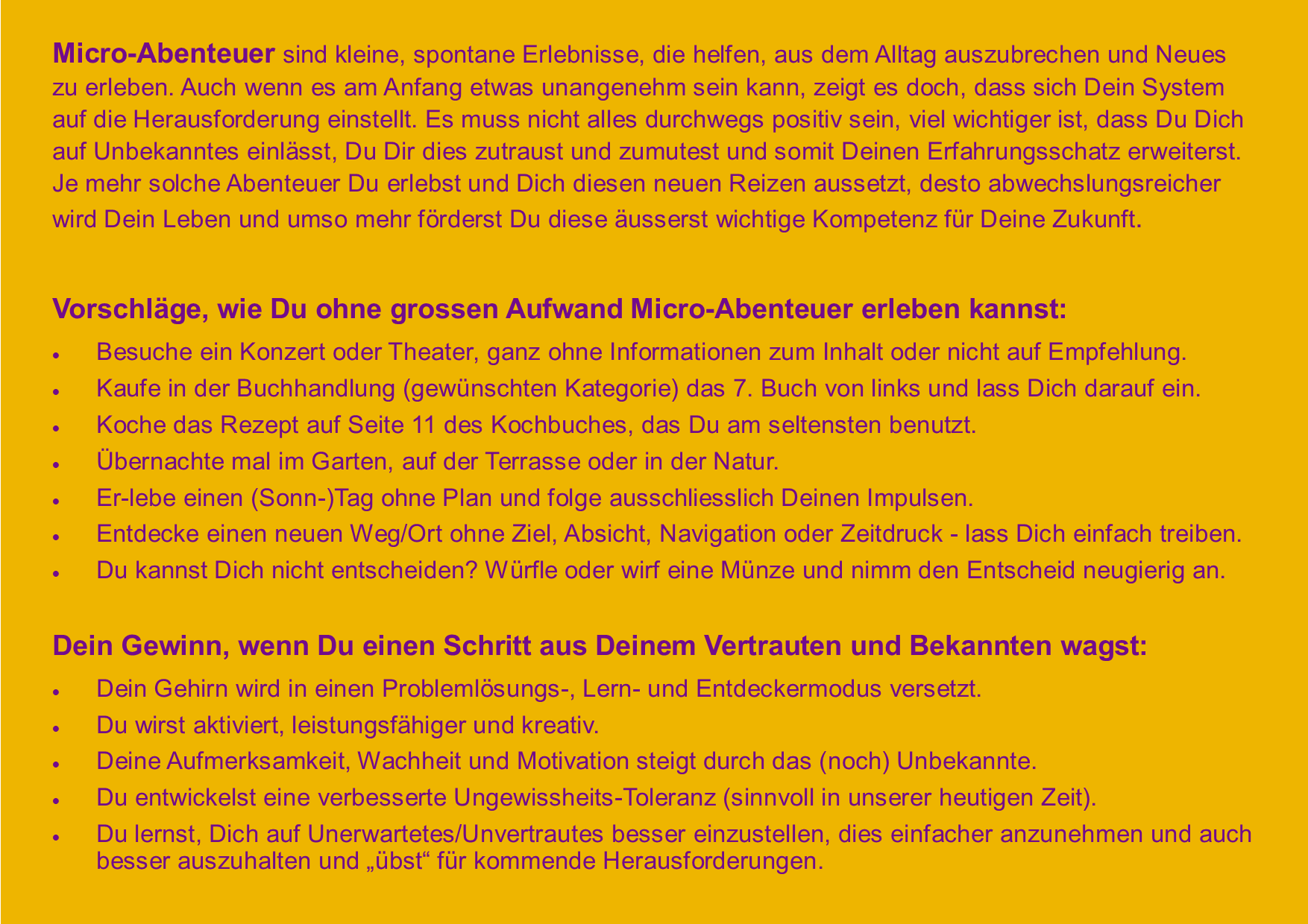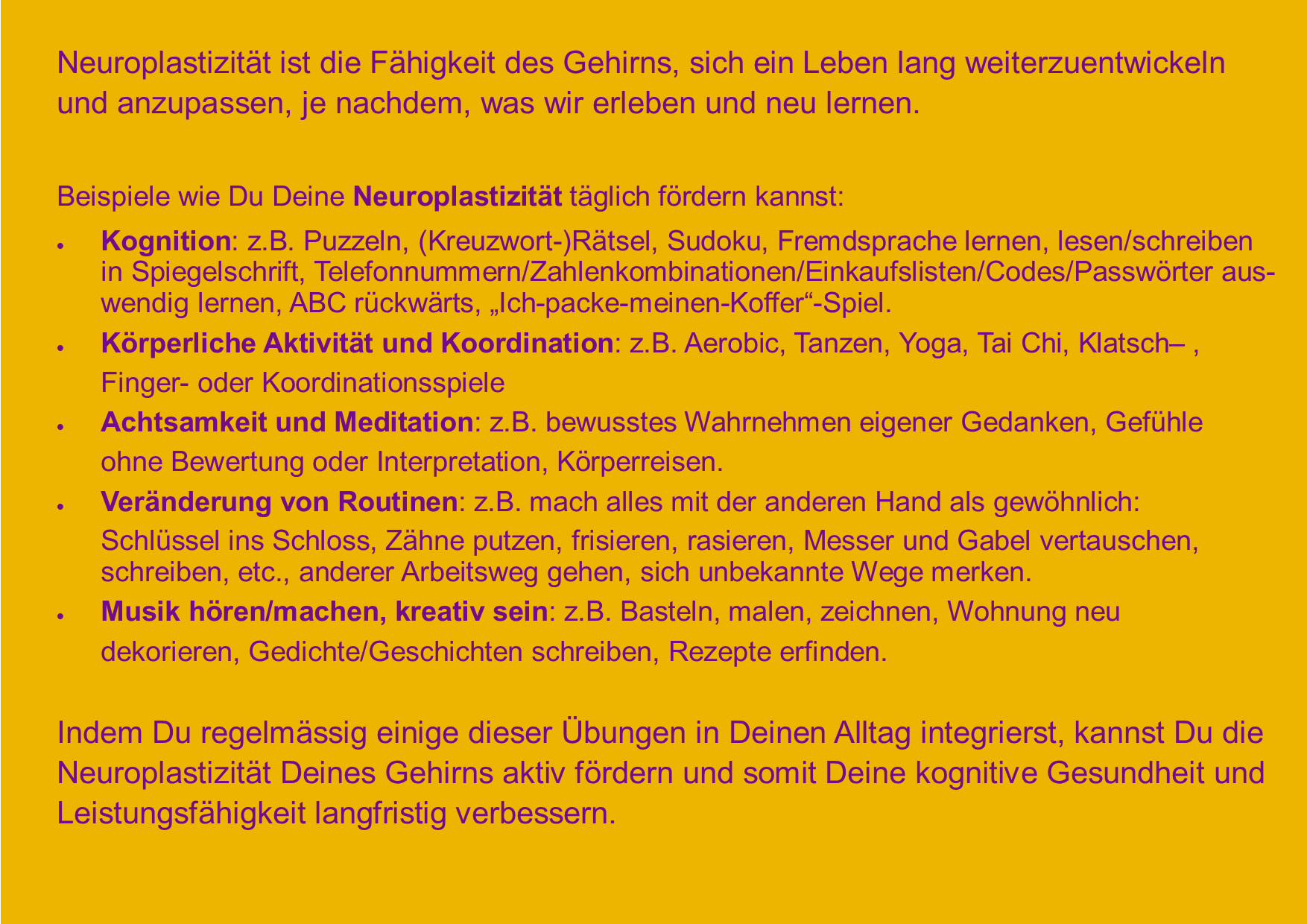... laufend neue und unterstützende Übungen, um Ihr Potential zu entfalten und Ihr Wohlbefinden zu fördern. Viel Spass und Erfolg :-)